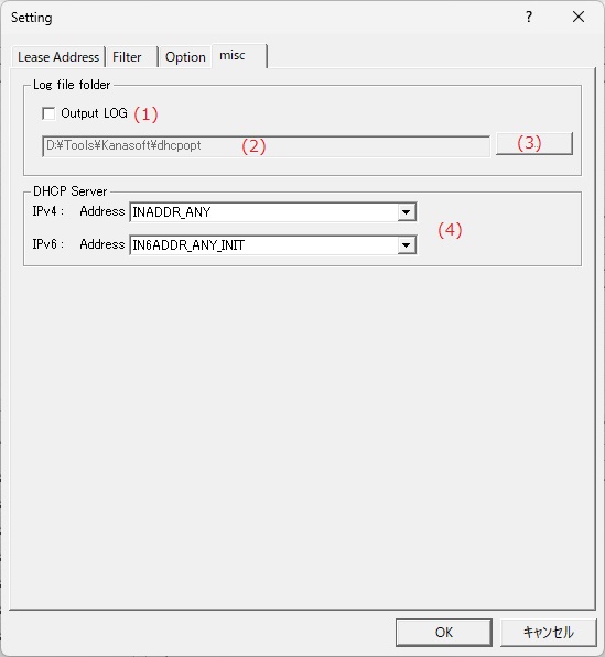 (5) | [OK] button | The settings made in this dialog will be reflected in the DHCP option list. |